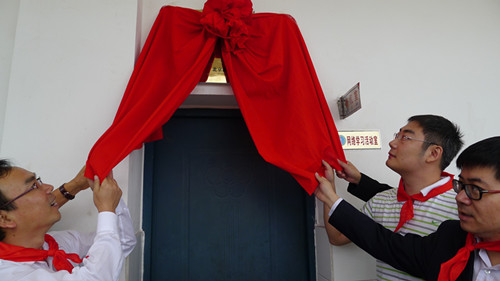 捐贈儀式結(jié)束后,石現(xiàn)升副秘書長同新店小學校長、捐贈企業(yè)代表一起為計算機教室揭牌。