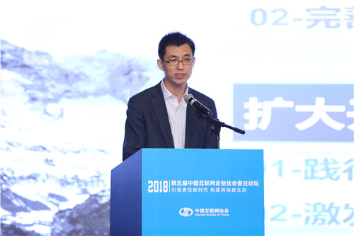 國家互聯網信息辦公室網絡社會工作局副局長易滌非在致辭中希望互聯網企業從四個方面加強社會責任建設,增強戰略意識,主動對標國家戰略,站在提高企業競爭力的高度認識社會責任建設的重要性,樹立互聯網企業的良好社會形象;增強法治意識,認真學習并嚴格遵守國家有關法律法規和政策規定,建立健全企業內部促進社會責任建設的規章制度,落實主體責任,加強平臺治理,依法誠信辦網;增強共享意識,正確處理好同企業相關的各方利益關系,在共享發展中做大做強;增強效益意識,把解決行業、網民痛點、難點作為社會責任建設的出發點和著力點,通過履行社會責任更好參與線上線下治理,最大程度發揮好互聯網企業的社會效益。各級網絡社會組織要充分發揮橋梁紐帶和參謀助手作用,積極推動互聯網企業社會責任建設,切實加強行業自律,探索建立互聯網企業履行社會責任效果評估機制和定期發布報告制度,促進互聯網企業社會責任建設沿著正確方向不斷向前發展。