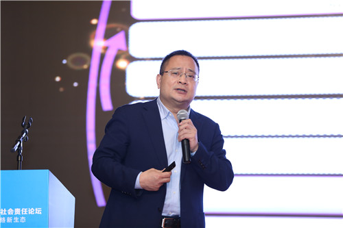 論壇上,清華大學新聞與傳播學院教授、博士生導師沈陽圍繞互聯網行業社會責任的機遇與挑戰作主題演講。
